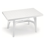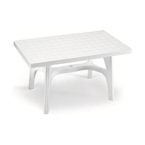 Tavolo da giardino rettangolare in resina cm 140x80xh73 bianco, gambe con traversa centrale antioscillazione e piedini regolatori