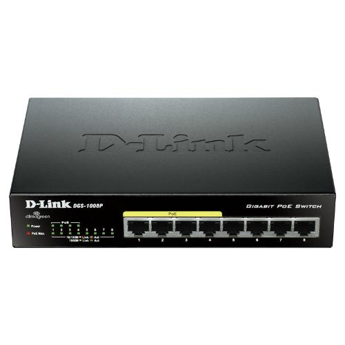 DGS-1008P rappresenta un modo economico di sfruttare i vantaggi della larghezza di banda di Gigabit Ethernet per gli utenti SOHO e PMI. Fornisce 8 porte Gigabit per un'applicazione veloce del server, così da poter soddisfare i crescenti carichi di rete.