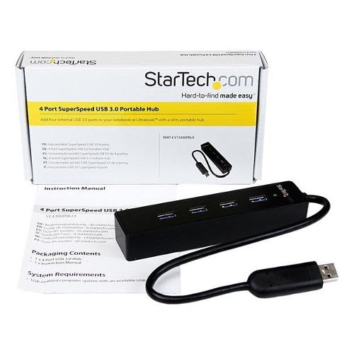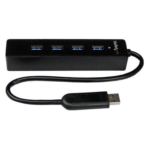 Questo hub slim portatile con cavo di maggiore lunghezza permette di aggiungere quattro porte USB 3.0 al laptop o Ultrabook