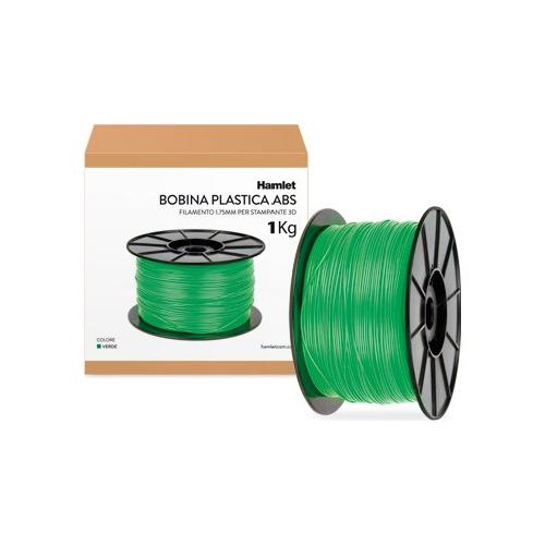 Bobina di filamento ABS verde, materiale particolarmente adatto alla realizzazione di oggetti tridimensionali con la stampante 3D Hamlet 3DX100.