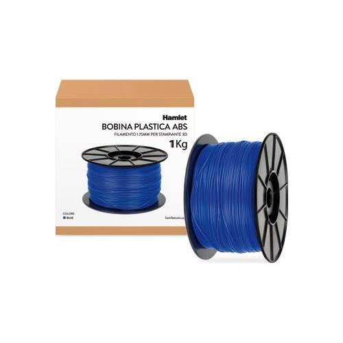 Bobina di filamento ABS blu, materiale particolarmente adatto alla realizzazione di oggetti tridimensionali con la stampante 3D Hamlet 3DX100.