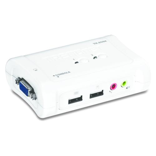 Lo Switch KVM 2 porte USB con audio permette di controllare le funzioni multimediali di due PC semplicemente usando una tastiera, un monitor, un mouse, un microfono e un paio di casse. Lo switch non consente di condividere solo tastiera, monitor e mouse ma anche il microfono e le casse. Con le sue caratteristichedi funzionamento Hot-Plug, Auto-Scan e Hot-Key, il TK-209K è la scelta perfetta per la gestione di 2 PC.