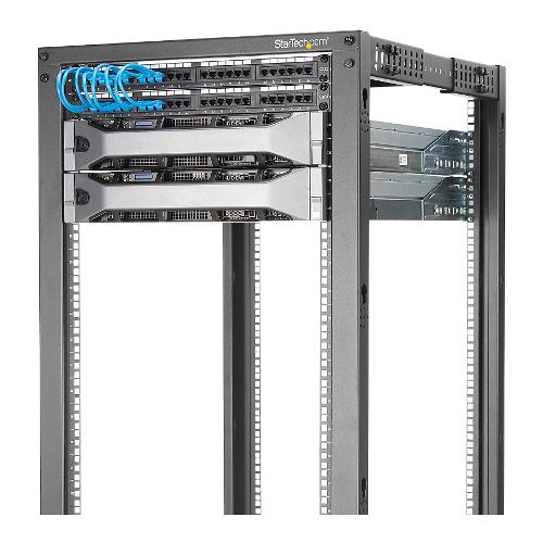 Progettato per un impiego agevole, questo rack 42U presenta marcature per unità rack (U) e profondità di facile lettura, con un'ampia gamma di regolazioni della profondità di montaggio montaggio da 56-101 cm (22 - 40") che semplificano l'adattamento del rack alle apparecchiature.