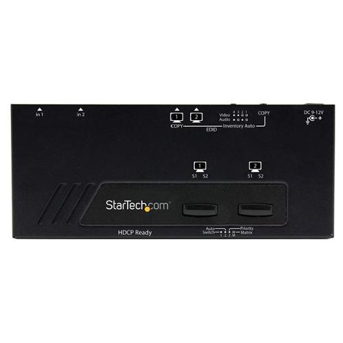 Lo switch matrice HDMI 2x2 VS222HDQ consente di risparmiare tempo ed evitare problemi grazie alla commutazione automatica tra le sorgenti audio/video HDMI. Questo switch matrice HDMI di facile utilizzo assicura una transizione senza problemi durante la commutazione tra le sorgenti video e i display grazie alla funzione di copia EDID che mantiene la risoluzione video.
