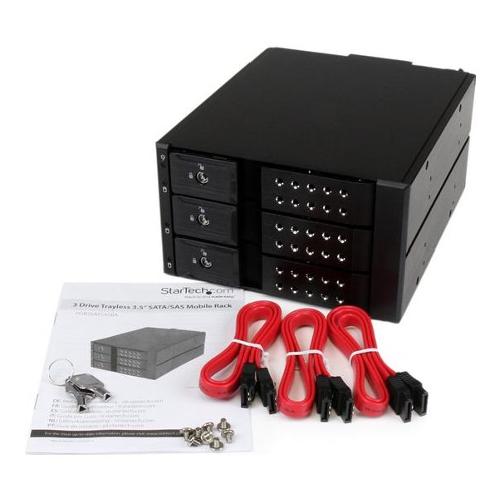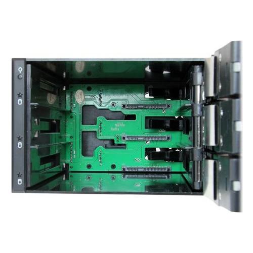 Semplice collegamento e hot-swap di massimo tre dischi rigidi SATA/SAS da 3,5” da due alloggiamenti di 5,25”