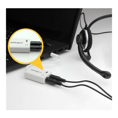 Trasforma una porta di uscita audio da 3,5 mm in due porte distinte: una porta per jack auricolari da 3,5 mm e una porta per il microfono da 3,5 mm