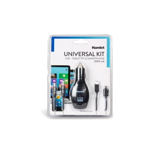 Universal Kit è la soluzione 4 in 1 per ricaricare i propri dispositivi mobili anche in auto. La pratica porta USB insieme ai 4 connettori di alimentazione intercambiabili in dotazione consentono di alimentare la maggior parte dei dispositivi mobili ricaricabili tramite USB quali Smartphone, Tablet e lettori MP3.