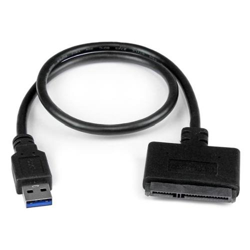 Questo cavo SATA a USB è un adattatore per unità esterne che consente di accedere in modo facile e veloce a un'unità SATA tramite la porta USB-A di un computer laptop.