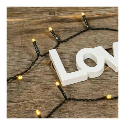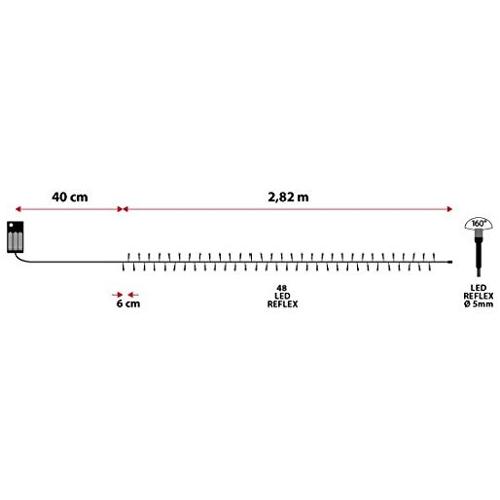 Catena lineare tl 48 led bianco caldo ø5mm reflex, memory controller integrato nel porta batterie luce fissa + 7 giochi di luce selezionabili + off, timer on-off 8-16 ore, a batteria 3xaa 1,5v, uso esterno, cavo verde, dimensioni 0,5 + 1,9m, colore scatola lusso (xkc art. Tl 48-ct 3aa).