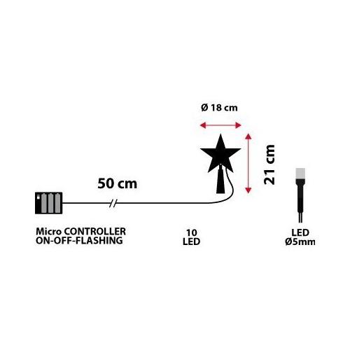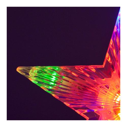 Puntale led dalla caratteristica costruzione con superficie sfaccettata con effetto visual. E' possibile attivare l'effetto lampeggiante in alternativa alla classica illuminazione fissa. Il cavo verde si mimetizza perfettamente tra i rami dell'albero.