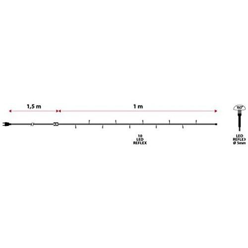 Catena lineare mb 10 led multicolor ø5mm reflex, luce fissa, 230v, uso interno, cavo verde, dimensioni 1,5 + 1m, sacchetto con cartoncino color appendibile (xkc art. Led-i mb 10-f 230v).