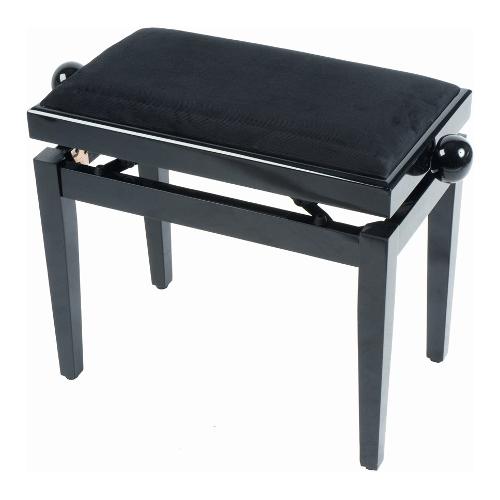 PB/010 BK è una panca di qualità in legno, ideale per pianoforte, con seduta in velluto millerighe nero, rivestimento durevole nel tempo. E' dotata di un meccanismo di regolazione dell'altezza in metallo che può essere regolato da 48 a 57 cm. Disponibile in nero laccato lucido, ha un carico massimo di 100 Kg.