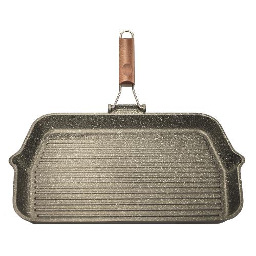 Bistecchiera xl granito in alluminio pressofuso ad alto spessore (6 mm) con il nuovo rivestimento antiaderente triplo strato hard stone ad alte performance, maggiore durata, maggiore resistenza, eco friendly, senza pfoa, nickel free e con l’aggiunta di micro particelle minerali.