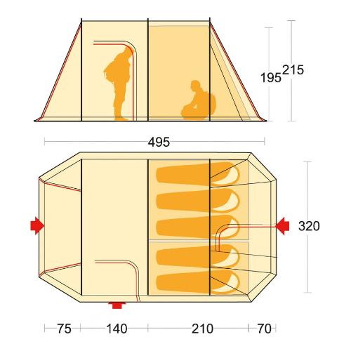 Chanty 5 deluxe è la tenda da campeggio familiare, pensata per 5 persone, confortevole e spaziosa, robusta e dotata di molti accorgimenti per il campeggio stanziale. Ingresso frontale, laterale e posterioree ampio abside anteriore. Cuffie e finestre di aerazione, porte camera con zanzariera esterna (“air ventilation system”)e porte tetto con zanzariera interna (“air ventilation system”)