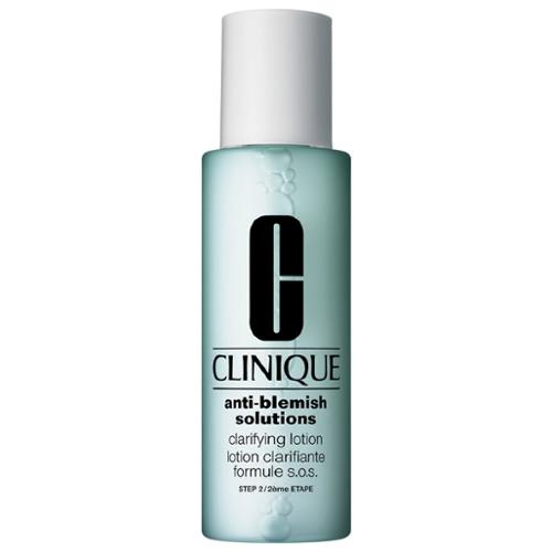 Lozione esfoliante delicata libera la superficie cutanea dalle cellule morte e riduce l'oleosità in eccesso, causa più comune dei brufoli, e libera i pori. Questa lozione contiene polveri che assorbendo l'eccesso di sebo eliminano la lucidità della pelle ed è in grado di lenire le irritazioni e gli arrossamenti visibili. Anti-blemish solutions clarifying lotion rappresenta la seconda fase del sistema in 3 fasi della linea anti-blemish di clinique. Agitare bene e passare su viso e collo con un batuffolo di cotone, evitando il contorno occhi; utilizzare mattina e sera dopo la pulizia con anti-blemish solutions cleansing foam , detergente in schiuma; quando i segni dell'acne sono scomparsi, continuare l'utilizzo a scopo preventivo; si consiglia di proseguire il trattamento con anti-blemish solutions clearing moisturizer, idratante purificante privo di oli.