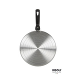 Disco induttore universale con manico smontabile cm 26. Progettato per essere utilizzato in modo universale con tutte le pentole e padelle che non sono compatibili con i piani cottura ad induzione, questo disco cattura il riscaldamento ad induzione sulla pentola posta sopra e mantiene caldi i cibi per oltre 10 minuti. Si puo’ usare il disco adapter con il manico montato per recipienti fino al diametro 28 . Per recipienti più grandi potete togliere il manico ma portando alcune precauzioni