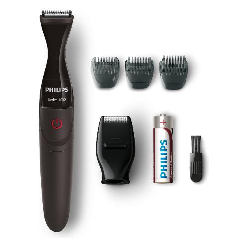Philips MULTIGROOM Series 1000 ti consente di rifinire, regolare e radere i peli del viso. Rifinisci e regola la tua barba in modo uniforme con i rifinitori e i pettini DualCut avanzati. Definisci linee e contorni con il rasoio di precisione. Completamente lavabile, batteria AA. Regolazione altezza taglio da 1 a 5mm