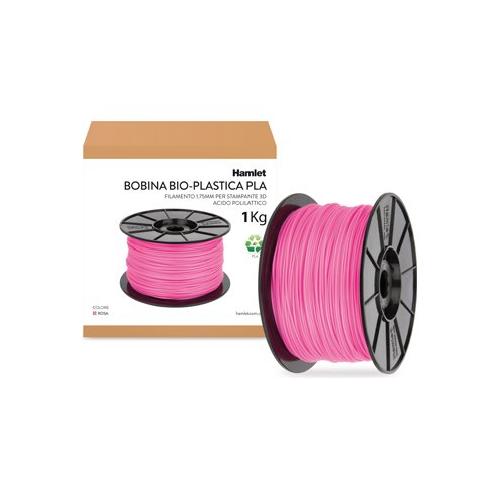 Filamento per stampanti 3D Hamlet realizzato in PLA (acido polilattico) a base di amido vegetale proveniente da fonti rinnovabili. Il PLA è biodegradabile e la sua fusione non da origine a vapori potenzialmente nocivi alla salute.