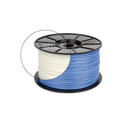 Bobina di filamento ABS termosensibile da blu a bianco (cambia colore con il calore), materiale particolarmente adatto alla realizzazione di oggetti tridimensionali con la stampante 3D Hamlet 3DX100.