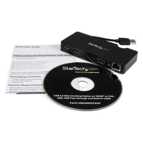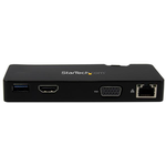 La docking station da viaggio per laptop consente di trasformare il laptop o Ultrabook™ in una workstation portatile. Consente di aggiungere un'uscita video HDMI® o VGA, una porta hub USB 3.0 e una porta RJ45 Gigabit Ethernet utilizzando un unico collegamento host USB 3.0. Il dock adatto per il viaggio consente di superare le limitazioni delle porte dei moderni computer portatili, risultando ideale per il laptop, Microsoft Surface™ Pro 4, Surface Pro 3, Surface 3, Surface Pro 2 o Surface Book..