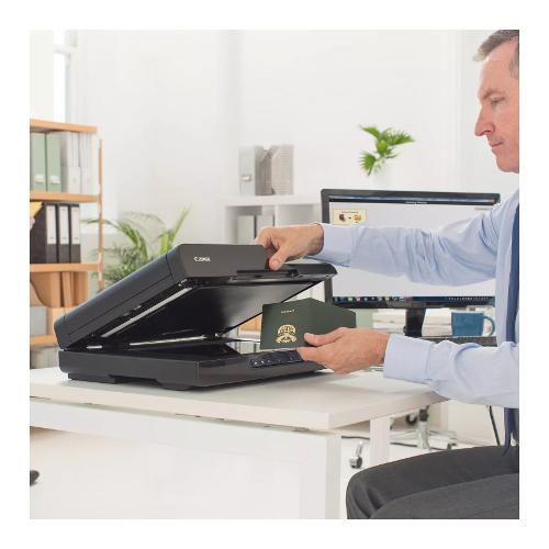 Acquisisci diversi tipi di documento in modo efficiente e preciso con DR-F120, una soluzione di scansione multifunzione compatta che offre alimentatore automatico di documenti (ADF) e piano fisso. L'alimentatore di documenti automatico da 50 fogli e velocità di scansione superiori a 20 ppm o 36 ipm ti consentono di risparmiare tempo prezioso¹. Affidati a DR-F120 per tutte le tue esigenze lavorative grazie a un volume giornaliero suggerito pari a 1500 scansioni. DR-F120 offre risultati di elevata qualità scansione dopo scansione grazie all'ampia gamma di opzioni di ottimizzazione dell'immagine integrate e alla rinomata tecnologia di imaging di Canon.