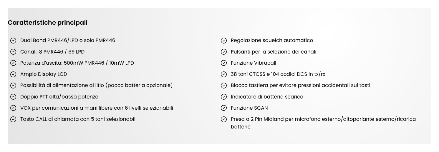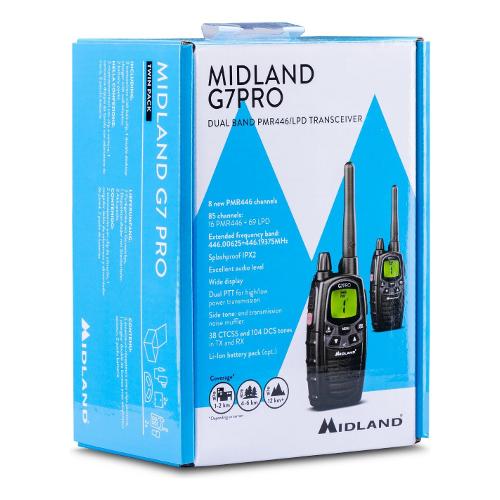Midland G7 Pro è la radio per te che ami le attività all’aria aperta. Escursionismo, softair, arrampicata, hunting, sono solo alcuni esempi di utilizzo perfetto di questo walkie talkie. Un design compatto ed elegante che ti accompagna sempre nelle tue passioni. Fra gli accessori opzionali puoi scegliere il pacco batteria al litio per renderla ancora più leggera e durevole. Utilizzo senza licenza.
