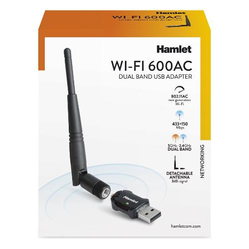 L'adattatore USB Wi-Fi 600AC di Hamlet aggiorna il notebook o il desktop allo standard 802.11ac, la tecnologia wireless di ultima generazione che offre alta velocità e stabilità.