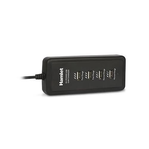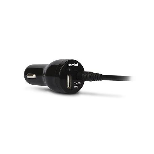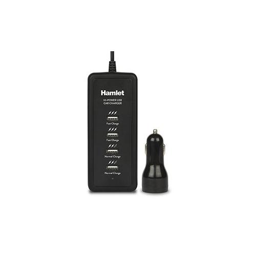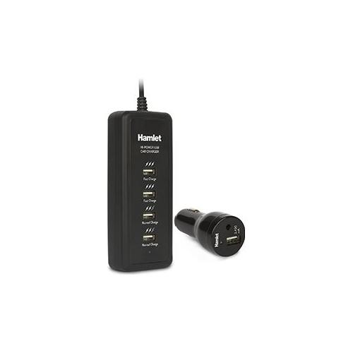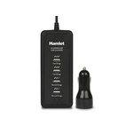 Hamlet Car Charger trasforma qualsiasi presa accendisigari da 12/24V in un potente caricabatteria USB che può caricare fino a 5 dispositivi elettronici contemporaneamente. È dotato di 3 porte USB da 2400mA, 1 sulla spina accendisigari e 2 sull'alimentatore, e 2 porte USB da 1000mA sull'alimentatore. Le porte da 2400mA sono particolarmente indicate per caricare tablet PC e smartphone con elevati requisiti di carica mentre le porte da 1000mA sono ideali per ricaricare piccoli dispositivi mobili come telefoni cellulari e lettori mp3.