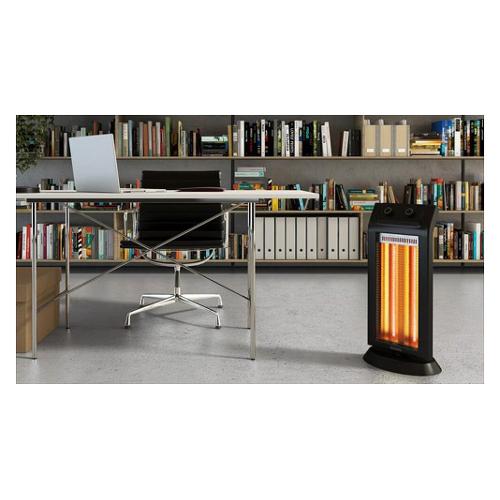 Stufa infrarossa a due livelli di potenza. Le lampade infrarosse realizzate in fibra di carbonio permettono di sfruttare il riscaldamento minimizzando la dispersione in luce. Dotata di oscillazione 90° è in grado di raggiungere fino ai 1100 W.