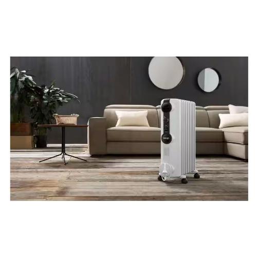 Calore durevole grazie alla lunga inerzia termica dell'olio all'interno dell'unità. Calore durevole e uniforme per stanze fino a 45 m3. Riscaldamento silenzioso e distribuito in modo uniforme per tutta la stanza. Imposta facilmente la temperatura desiderata, gestisci i settaggi della potenza con le manopole regolabili. Sposta facilmente l'unità grazie alle rotelle pieghevoli pre-montate