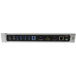 Questa Docking Station replicatore di porte trasforma un computer laptop USB 3.0 in una workstation completa, con due uscite DisplayPort e un'uscita HDMI. Inoltre, a differenza di alcune docking station proprietarie che funzionano solo con marche specifiche di computer laptop, questa docking station è universale e può essere utilizzata con qualsiasi computer Mac o Windows dotato di tecnologia USB 3.0.