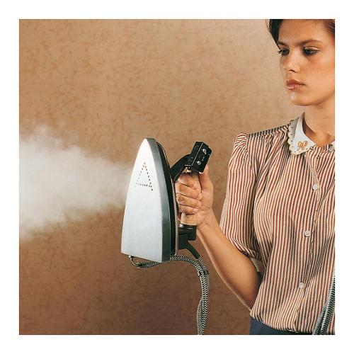 Ferro da stiro a vapore con caldaia e tappo di sicurezza: design vintage e stiratura professionale.