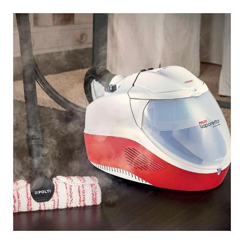 Polti Vaporetto Lecoaspira FAV50_Multifloor è lo speciale pulitore a vapore dotato anche di sistema di aspirazione con filtro ad acqua che ti permette di pulire tutti i tipi di pavimenti come parquet, cotto, tappeti. La dotazione di accessori permette di svolgere anche pulizie straordinarie e più approfondite.
