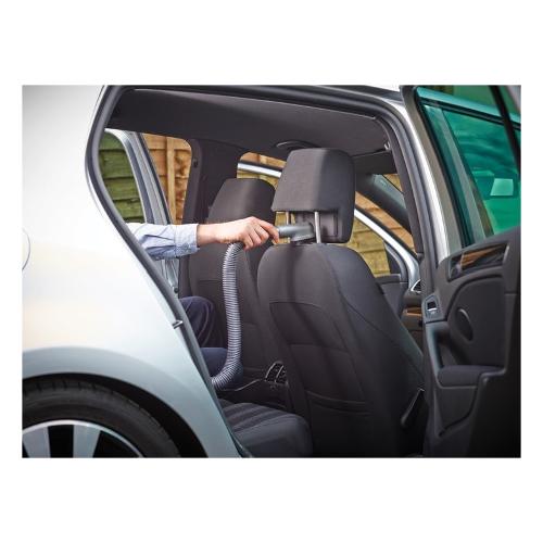 Pratica borsa in dotazione. La sua bocchetta aspirante lunga e sottile consente di arrivare ovunque. Ideale per pulire gli interni della macchina. Con azione ciclonica che riduce il rischio di ostruzione del filtro ed ottimizza la forza d'aspirazione. Comodo sistema di apertura del capiente contenitore da 610 ml con un click, per facilitare lo svuotamento senza entrare in contatto con lo sporco raccolto. Dotato di bocchetta a lancia, ideale per accedere ai punti più difficili e di spazzolina per i sedili e i tappetini. Il cavo dell'adattore lungo 5 metri permette di raggiungere facilmente ogni parte dell'automobile, incluso il bagagliaio. Sistema di filtraggio a doppia azione per garantire elevate prestazioni nel tempo. Il cavo può essere avvolto sull'apposita base per un riponimento ordinato