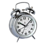 Sveglia al quarzo analogica in metallo con suoneria su campana metallica e luce. Movimento continuo silenzioso.