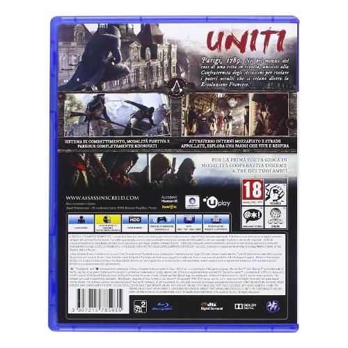 Assassin’s Creed® Unity è un gioco di azione/avventura ambientato nella città di Parigi, durante uno dei suoi periodi più bui, la Rivoluzione Francese. Questa volta vestirai i panni del tuo eroe. Avrai pieno controllo di Arno, potendo personalizzare il suo equipaggiamento, sia visivamente, che meccanicamente. In aggiunta a un’epica esperienza single-player, Assassin’s Creed Unity offre la possibilità di giocare con altri tre amici in una campagna cooperativa online in svariate missioni. Prendi parte ad uno dei momenti cruciali della storia francese e immergiti in un’avvincente trama e in un'ambientazione di gioco mozzafiato, quella che ha portato la Città delle Luci allo splendore dei giorni nostri.