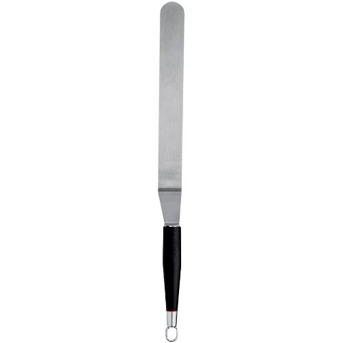 Spatola angolata in acciaio inox con lama flessibile cm 24 la pasticceria di precisione iginio massari, manico ergonomico in materiale antiscivolo. Lo scalino della spatola facilita la precisione nello stendere farciture di creme e nello spalmare grandi superfici. Angolazione di 140° per una perfetta manovrabilità. Spessore dell’acciaio di tipo armonico da 0,8 mm. Il manico presenta un rivestimento gommato che ne garantisce una presa sicura e comoda