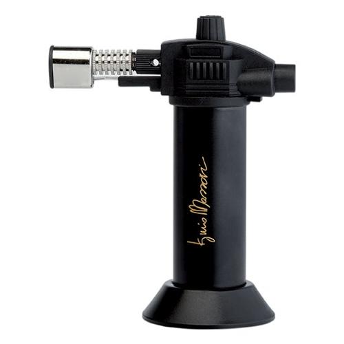 Cannello a fiamma regolabile la pasticceria di precisione iginio massari. Anello di regolazione dell’aria. Manopola di regolazione del gas. Grilletto. Valvola di riempimento del gas. Contiene 15 ml di gas butano. Dimensioni: 32 x 132 x 100 mm. Temperatura di esercizio: 1300°c. Durata: 30-40 minuti circa. Utilizzato per le crème brûlè, caramellare dolci meringati o coperti di zucchero