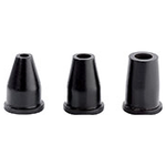 Imbuto dosatore con tre beccucci in silicone e piedistallo La Pasticceria di Precisione Iginio Massari. Modulando la pressione sulla leva di apertura, la molla centrale permette di operare con la massima precisione in fase di colaggio di alimenti liquidi o cremosi (gelatine, cioccolatini, mini-dessert). Indispensabile per servire cioccolato, intingoli, salse o creme sui dolci impiattati, per dosare ripieni nei cioccolatini, e per il collaggio di confetture su biscotteria da tè