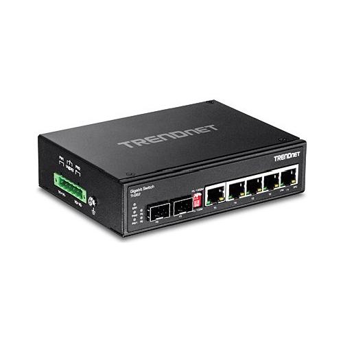 Il TI-G62 di TRENDnet è un affidabile switch IP30 non gestibile su guida DIN con componenti rinforzati adatti per ambienti industriali ostili. Offre 5 porte Gigabit Ethernet, uno slot SFP condiviso, uno slot SFP dedicato ed una capacità di commutazione di 12 Gbps. I DIP switch selezionano la porta condivisa Gigabit o lo slot SFP ed il throughput supportato di 100 Mbps oppure di 1 Gbps. I doppi ingressi di alimentazione ridondati (alimentatore venduto a parte: TI-M6024) ed una uscita di attivazione allarme per guasto d'alimentazione consentono applicazioni con tempo di fermo nullo.