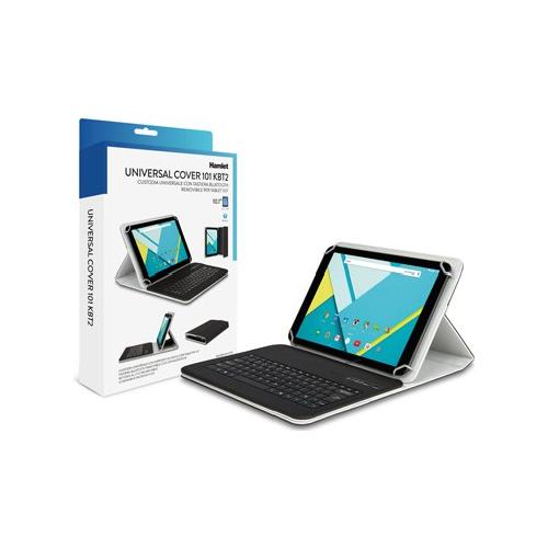 Universal Cover 101 KBT2 di Hamlet è una pratica custodia protettiva universale disegnata per Tablet PC da 10.1" dotata di tastiera Bluetooth senza fili. La custodia consente di utilizzare il Tablet in posizione verticale con l'inclinazione ideale per una digitazione confortevole e la massima comodità di lavoro, proteggendo al contempo il dispositivo da graffi e urti. Il Tablet è assicurato alla custodia tramite apposite clip che lasciano libero accesso ai pulsanti e alle porte laterali. La tastiera Bluetooth è removibile e può essere facilmente separata dalla custodia grazie alle clip magnetiche. La chiusura avviene tramite un lembo magnetico. Dotata di cavo USB per la ricarica della batteria della tastiera.