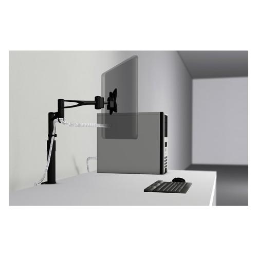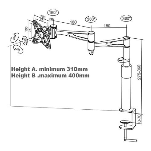Il braccio è estensibile fino a 44 cm e i si compone di 3 snodi che permettono di trovare la posizione ottimale. La colonna su ui è fissato consente una minima regolazione dell’altezza.