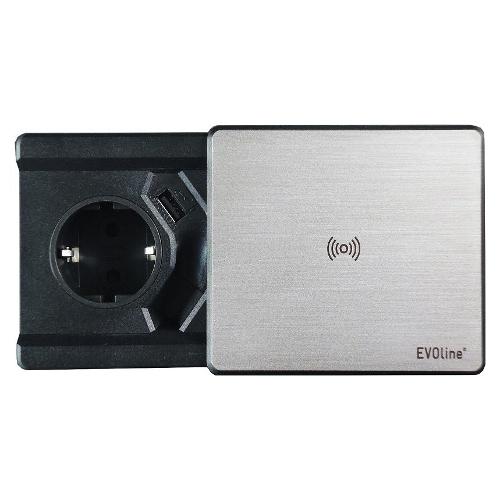 Multipresa mobile da incasso a scomparsa 1P 10/16A SQUARE 80 Inox satinato e Nero 159270003600