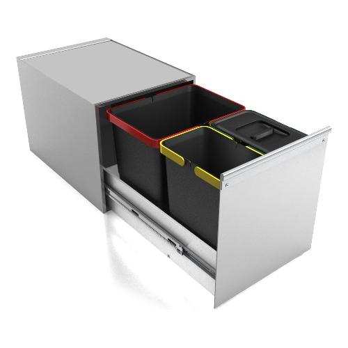 Estrazione totale frontale ad apertura manuale; ampio pianale superiore per appoggio oggetti vari. Telaio acciaio con guide metalliche a richiamo automatico, contenitori plastica