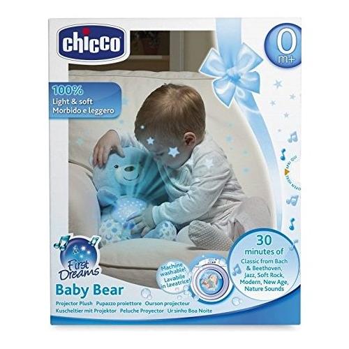 Baby bear di chicco è un tenero orsetto proiettore che, grazie a suoni ed effetti luminosi, assicura al tuo bimbo un sonno tranquillo e ristoratore. Una volta acceso baby bear può riprodurre melodie rilassanti e suoni naturali per un intervallo di tempo di 30 minuti e gli effetti luminosi sono regolabili secondo tre diverse intensità. Lavabile in lavatrice è disponibile anche in rosa.