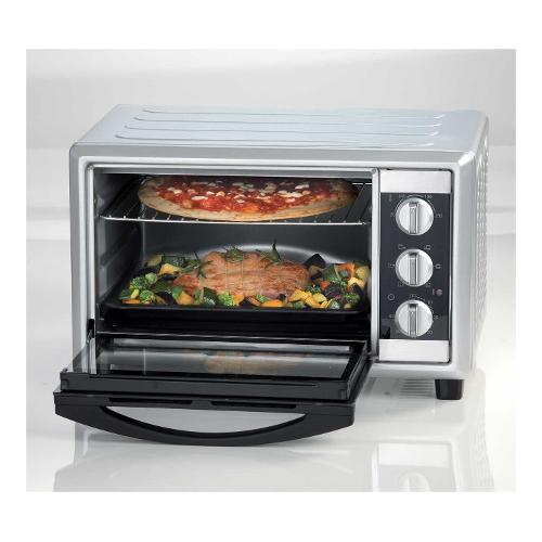 Bon Cuisine 300 è il forno elettrico da 30 litri con funzione statica e ventilata perfetto per la preparazione di piatti appetitosi e ricchi di sapore fatti con le tue mani e la tua fantasia. Divertiti a provare tante ricette cotte in forno per deliziare i palati di tutta la famiglia e mettere in tavola tanto gusto e profumo! Con i suoi 1500 Watt di potenza, una capacità di 30 litri e 6 modalità di cottura, Bon Cuisine 300 ti permetterà di preparare arrosti di carne, pesce, verdure, pasta al forno, pizze, torte, biscotti con tutto il gusto e la bontà delle cose genuine fatte in casa. La funzione ventilazione consente di cuocere i cibi in maniera combinata, mentre il doppio vetro ad elevata resistenza mantiene costante la temperatura e contribuisce a ottimizzare i tempi di cottura. Completo di griglia in acciaio inox, leccarda, vassoio raccogli briciole e manico con pinza per estrarre gli accessori è un prodotto completo e irrinunciabile per la tua cucina. Il timer è impostabile fino a 60 minuti e la temperatura fino a 230°C. Con Bon Cuisine 300 ogni piatto ha più sapore.