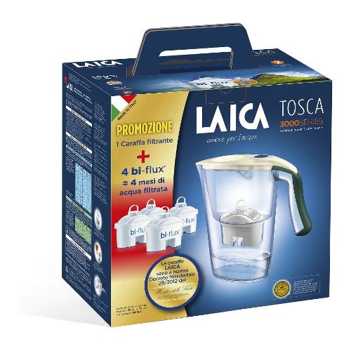 Caraffa filtrante TOSCA Kit con 4 filtri Bi Flux Cream dark e Green (2,3Lt) J9059A1