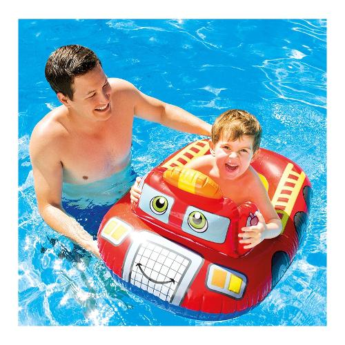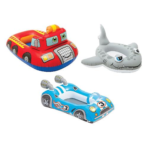 Assortimento di canottini per bambini con portata massima di 24 kg: rocket racer cm 100 x 64, pesce cm 107 x 69, nave pirata cm 119 x 69, auto pompieri 98 x 72 cm, squalo 117 x 114 cm, macchina da corsa 107 x 69 cm