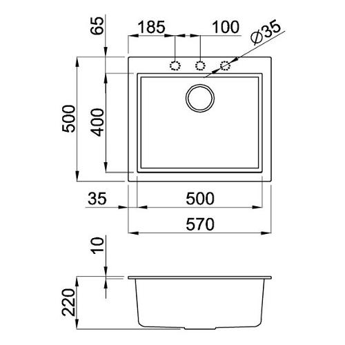 Lavello 1 vasca (57x50cm) QUADRA 105 Aluminium Metal LMQ10579