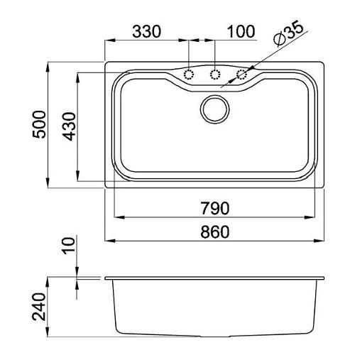 Lavello 1 vasca (86x50cm) FOX 360 Nero Opaco LGF36040